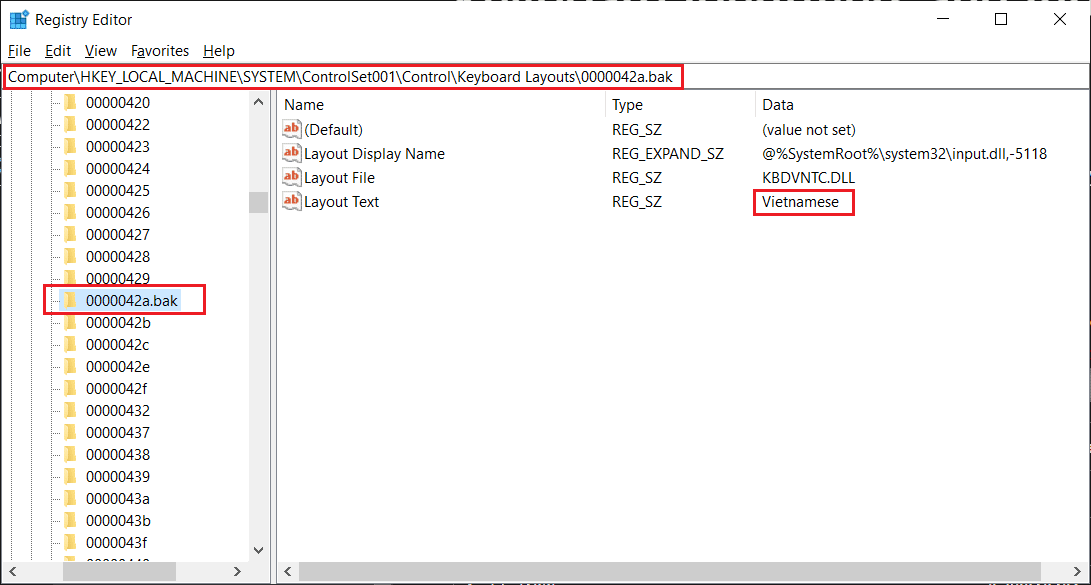 Code 0000042a là code nhận dạng bộ gõ bàn phím Tiếng Việt. Code nhận dạng các ngôn ngữ khác được Microsoft liệt kê tại đây.