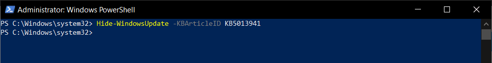 Hide-WindowsUpdate -KBArticleID KBNUMBER