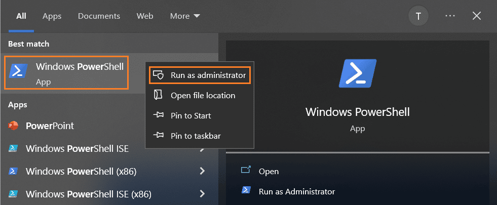 • Mở PowerShell bằng quyền Quản trị (Run as Administrator)